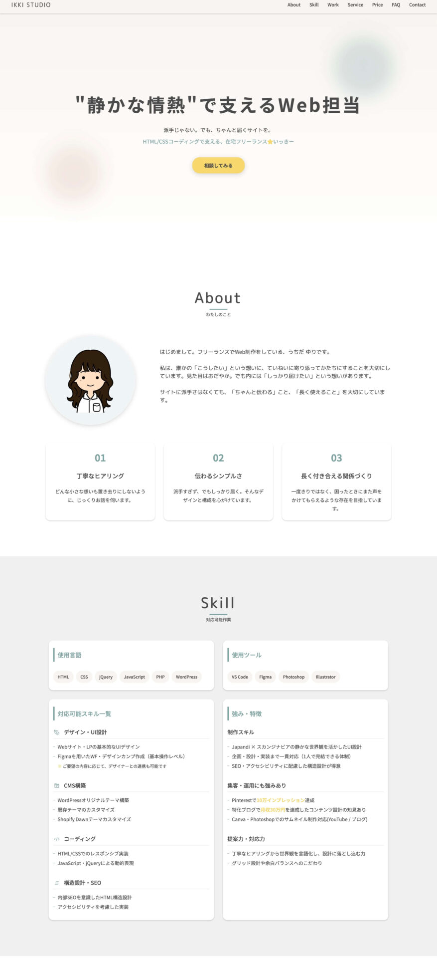 Webサイト制作やWordPress構築、既存サイトの修正など幅広く対応しています。ご希望に応じて柔軟にサポート可能です。