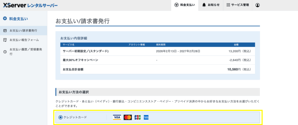 エックスサーバーでクレジットカード払いをする方法【画像付き】