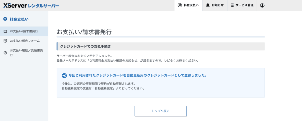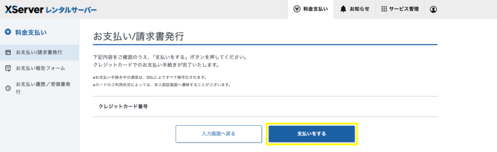 今回は、エックスサーバーでクレジットカード払いをする手順を画像付きで解説します。